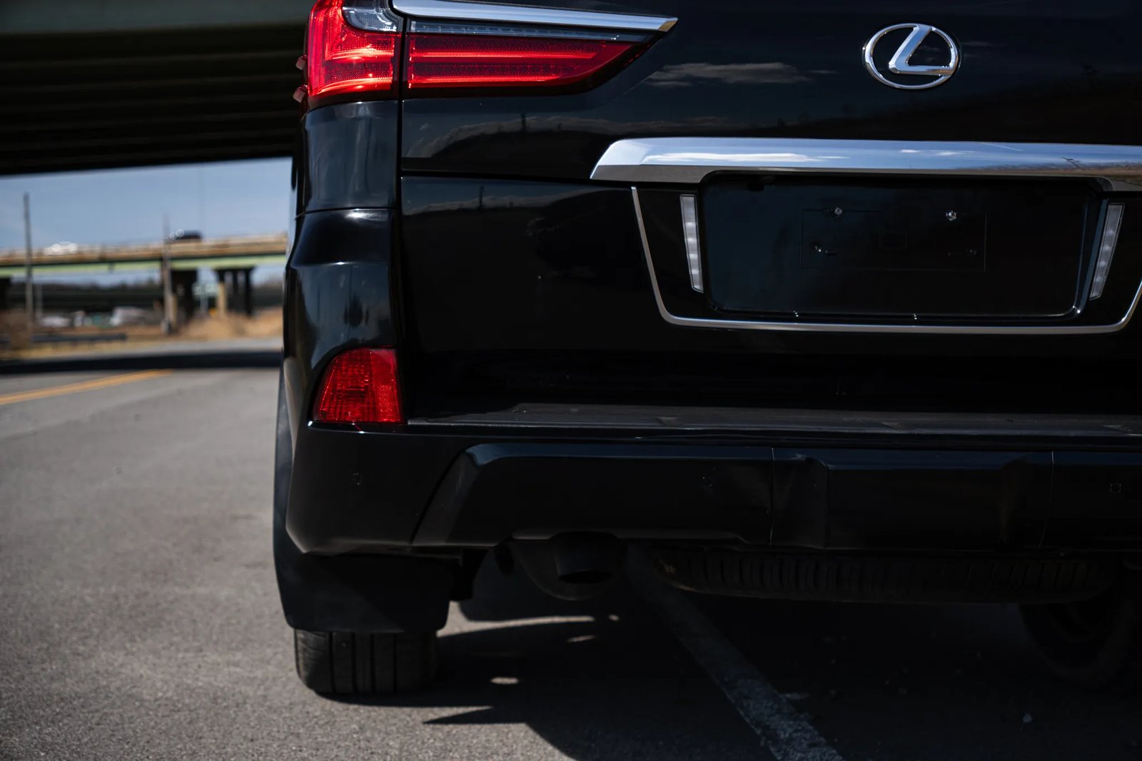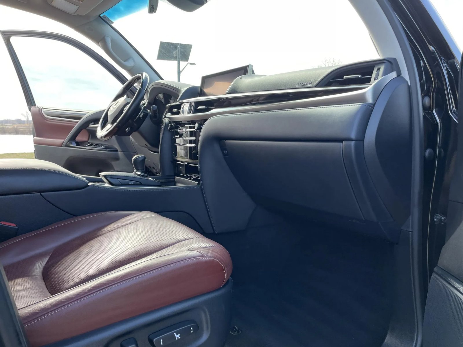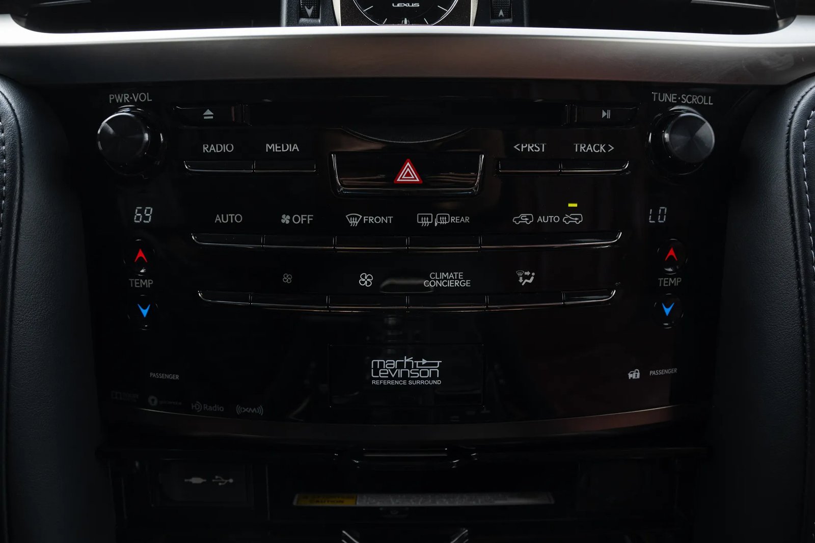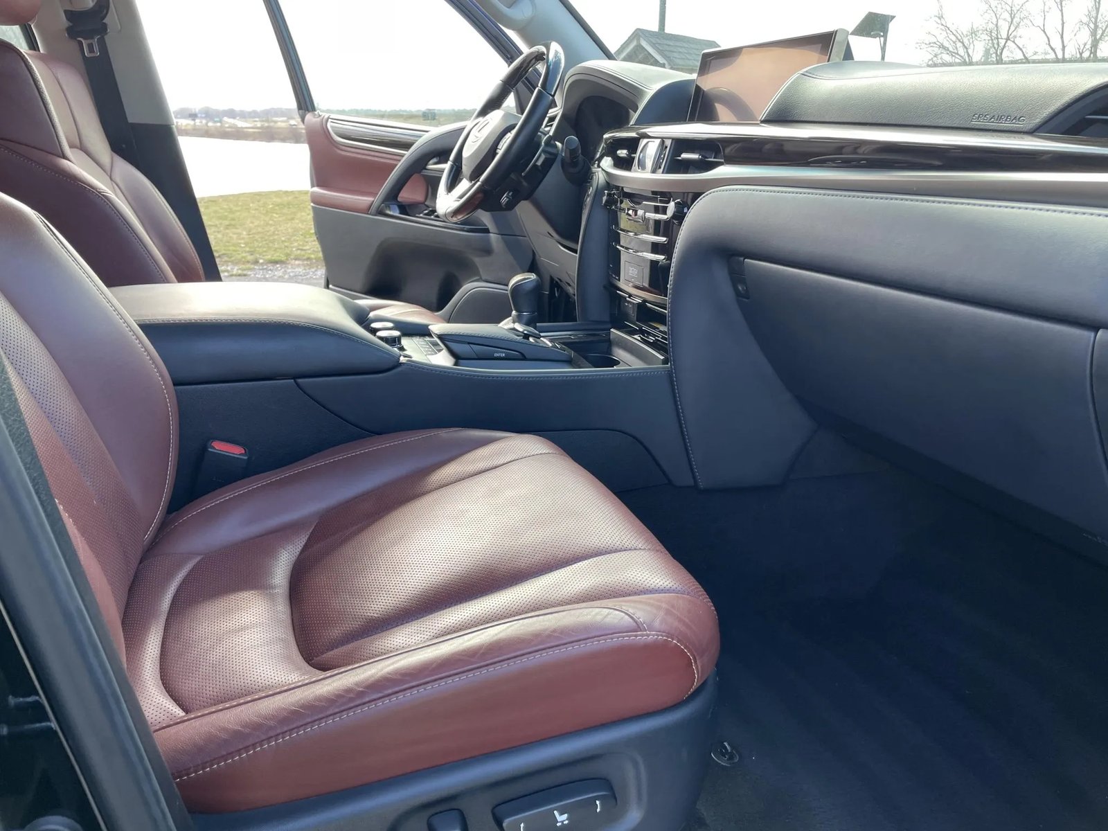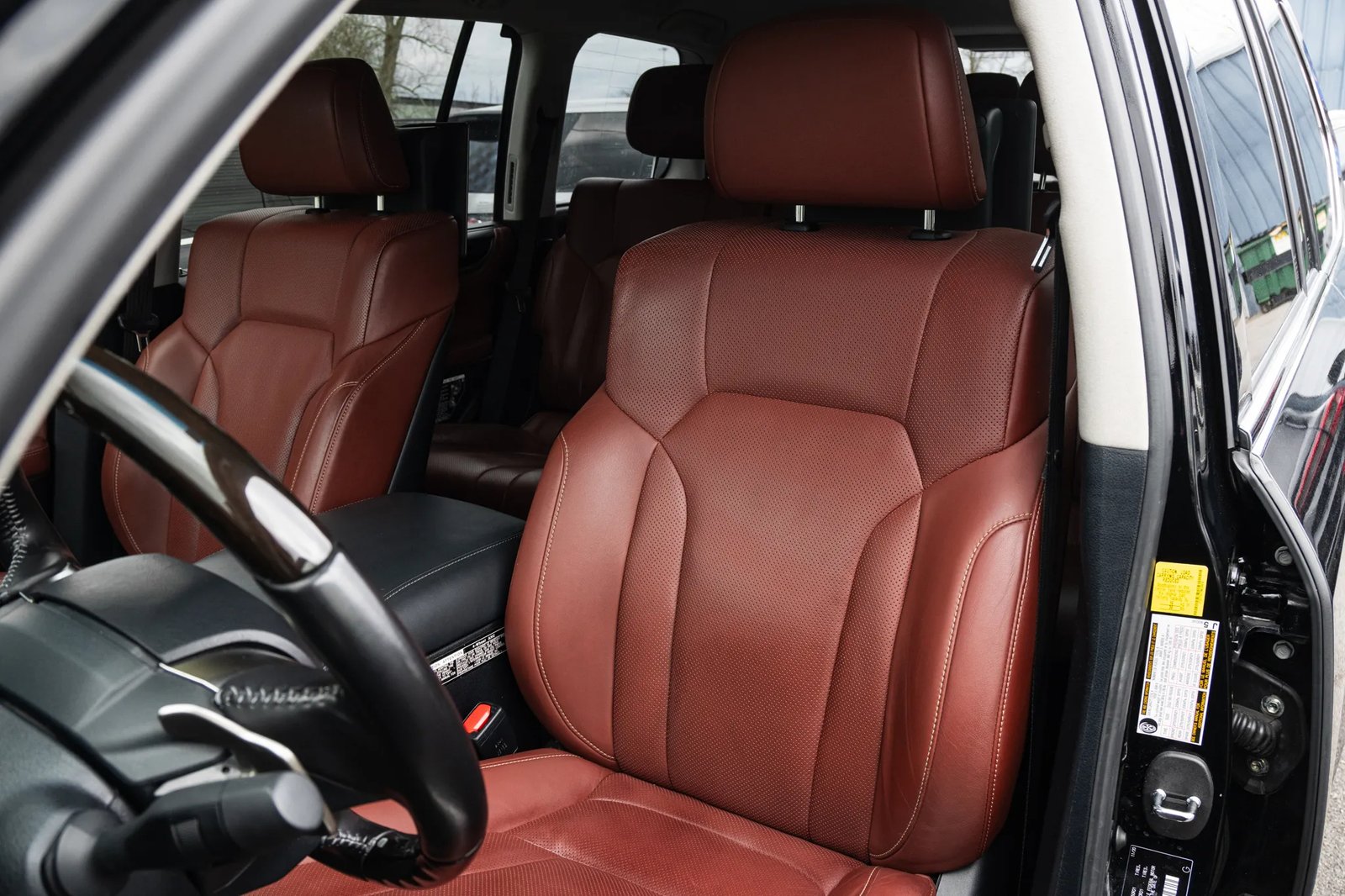 CLEAN CARFAX. BLACK 2018 LEXUS LX570 WITH RED SEMI-ANILINE LEATHER UPHOLSTERY, 5.7L V8, 8-SPEED AUTOMATIC TRANSMISSION, DUAL-RANGE TRANSFER CASE, AND LIMITED-SLIP CENTER DIFFERENTIAL. EQUIPPED WITH LUXURY PACKAGE, ADAPTIVE VARIABLE SUSPENSION, 21″ ALLOY WHEELS, POWER SUNROOF, TRIPLE-BEAM LED HEADLIGHTS, PANORAMIC VIEW & MULTI-TERRAIN MONITORS, HEATED & VENTILATED FRONT & REAR SEATS, FOUR-ZONE CLIMATE CONCIERGE, MARK LEVINSON 19-SPEAKER SURROUND SOUND, REAR SEAT ENTERTAINMENT SYSTEM, HEAD-UP DISPLAY, AND LEXUS SAFETY SYSTEM+