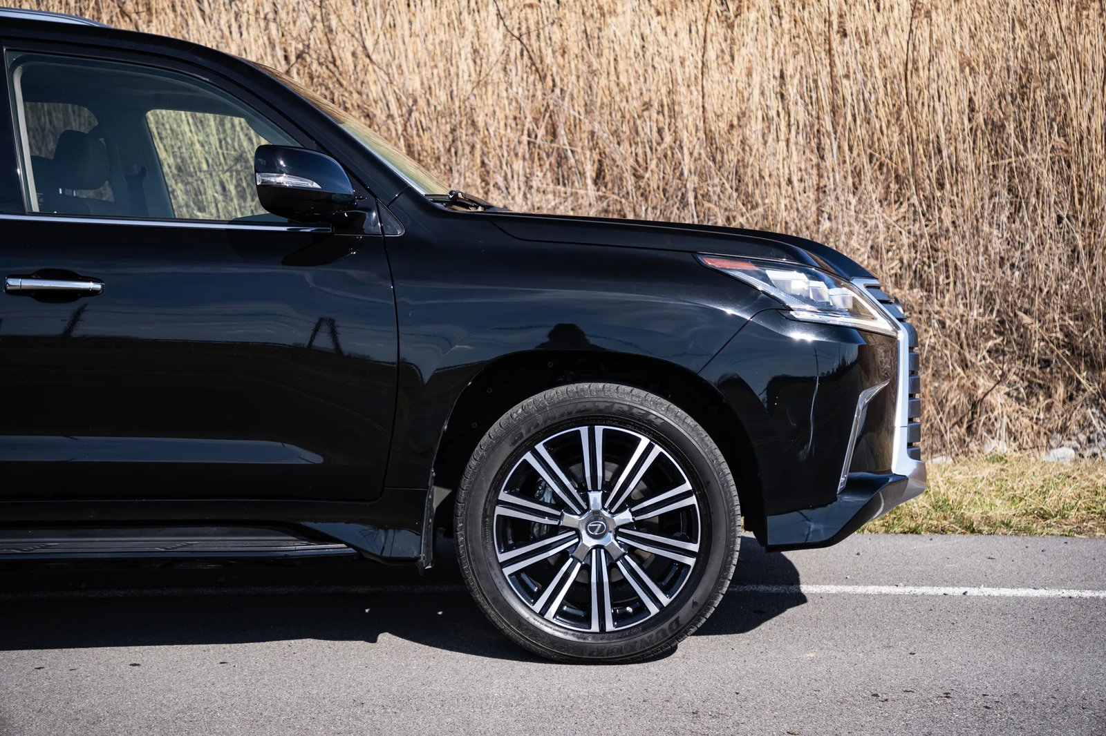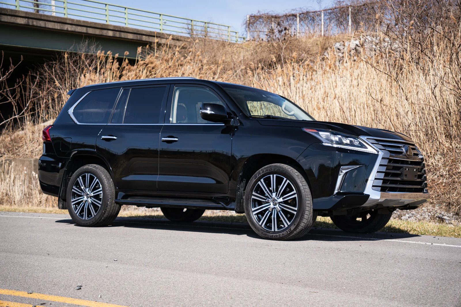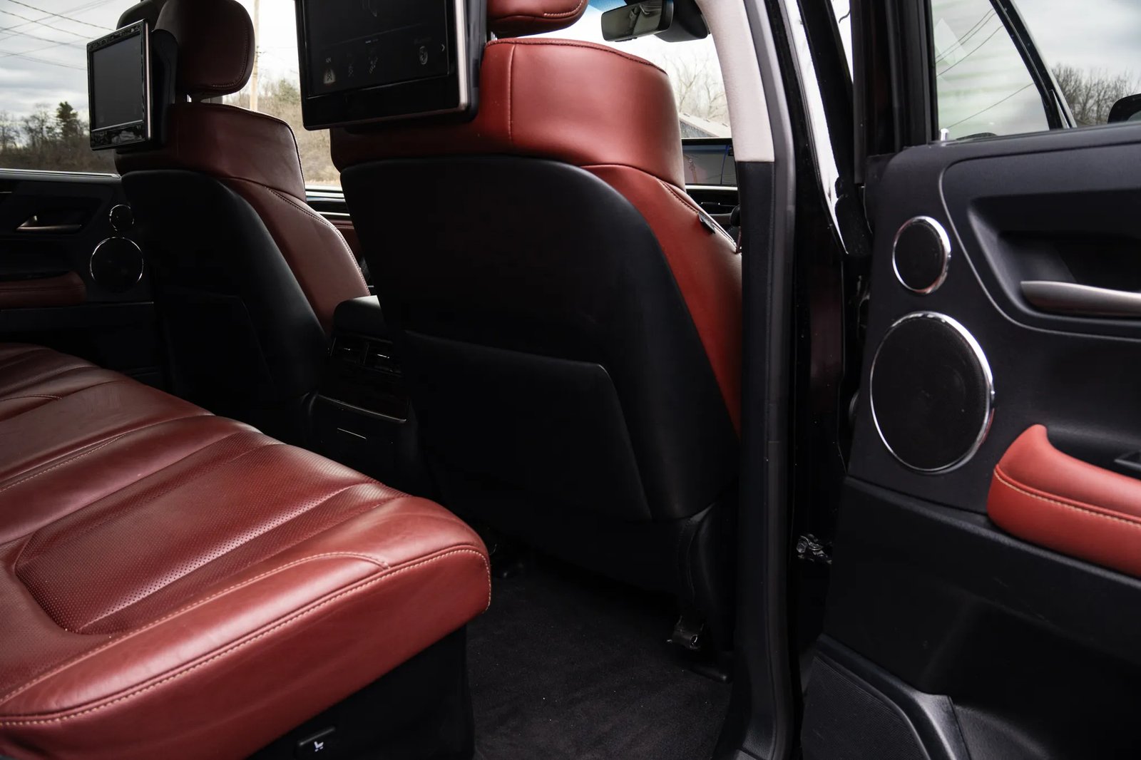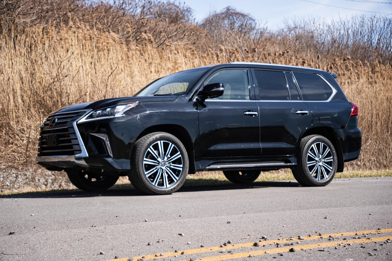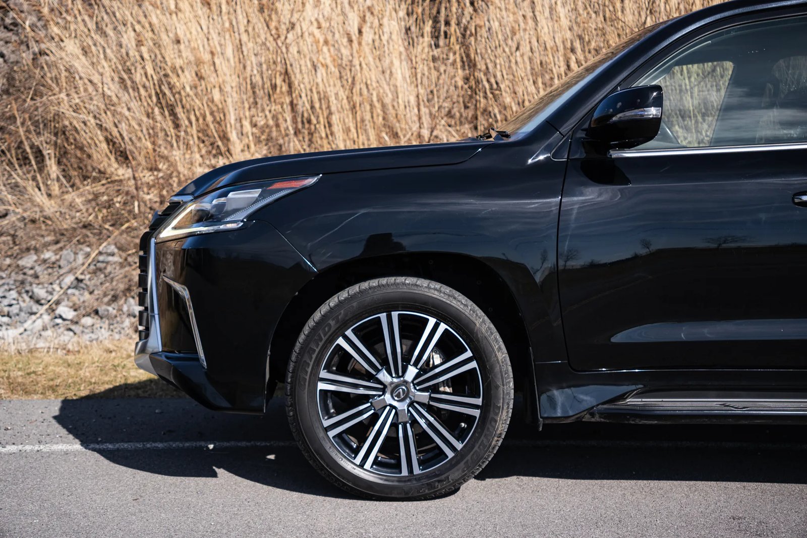 CLEAN CARFAX. BLACK 2018 LEXUS LX570 WITH RED SEMI-ANILINE LEATHER UPHOLSTERY, 5.7L V8, 8-SPEED AUTOMATIC TRANSMISSION, DUAL-RANGE TRANSFER CASE, AND LIMITED-SLIP CENTER DIFFERENTIAL. EQUIPPED WITH LUXURY PACKAGE, ADAPTIVE VARIABLE SUSPENSION, 21″ ALLOY WHEELS, POWER SUNROOF, TRIPLE-BEAM LED HEADLIGHTS, PANORAMIC VIEW & MULTI-TERRAIN MONITORS, HEATED & VENTILATED FRONT & REAR SEATS, FOUR-ZONE CLIMATE CONCIERGE, MARK LEVINSON 19-SPEAKER SURROUND SOUND, REAR SEAT ENTERTAINMENT SYSTEM, HEAD-UP DISPLAY, AND LEXUS SAFETY SYSTEM+