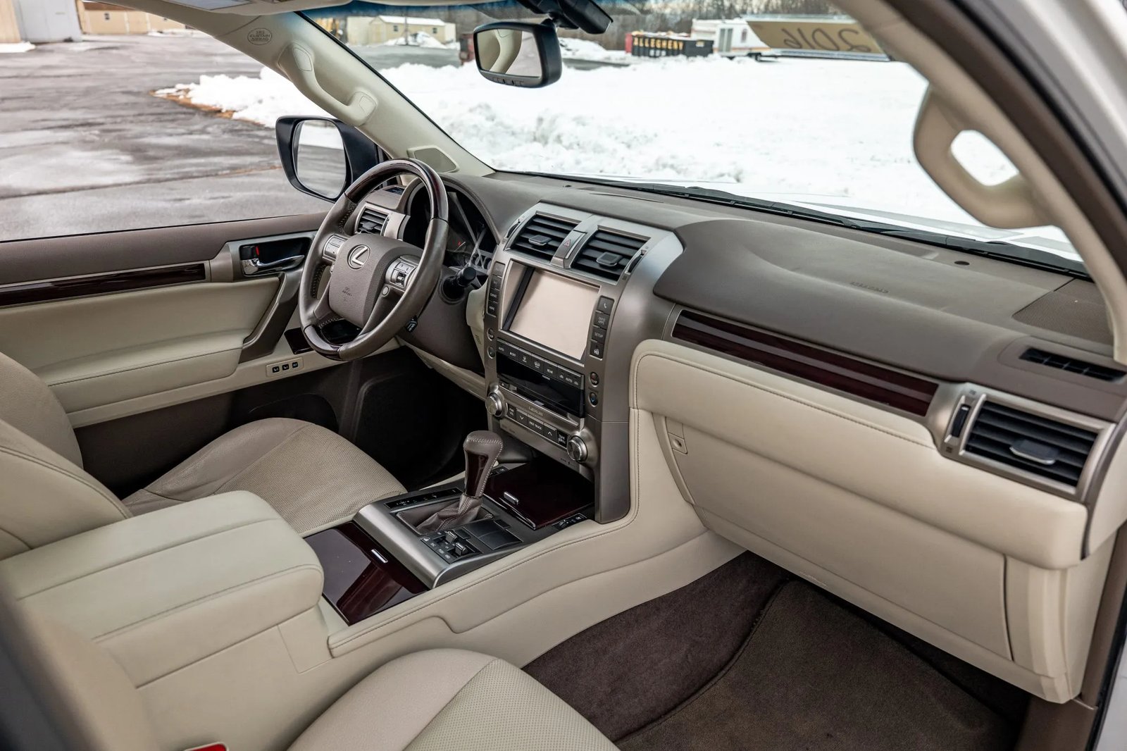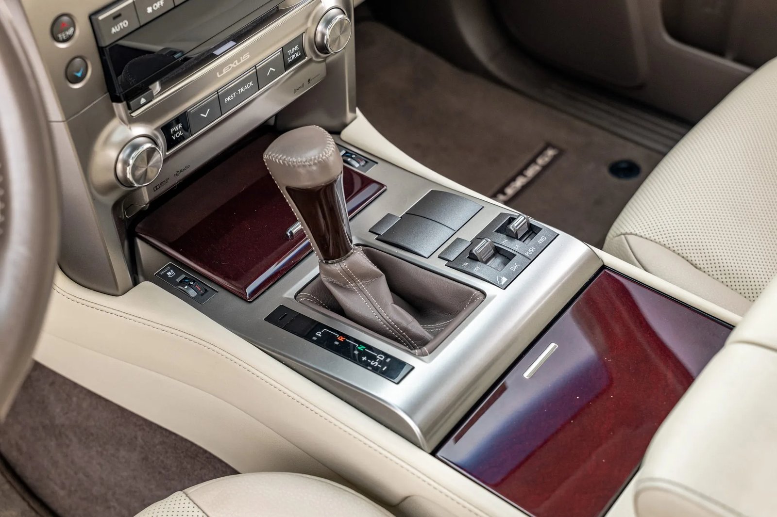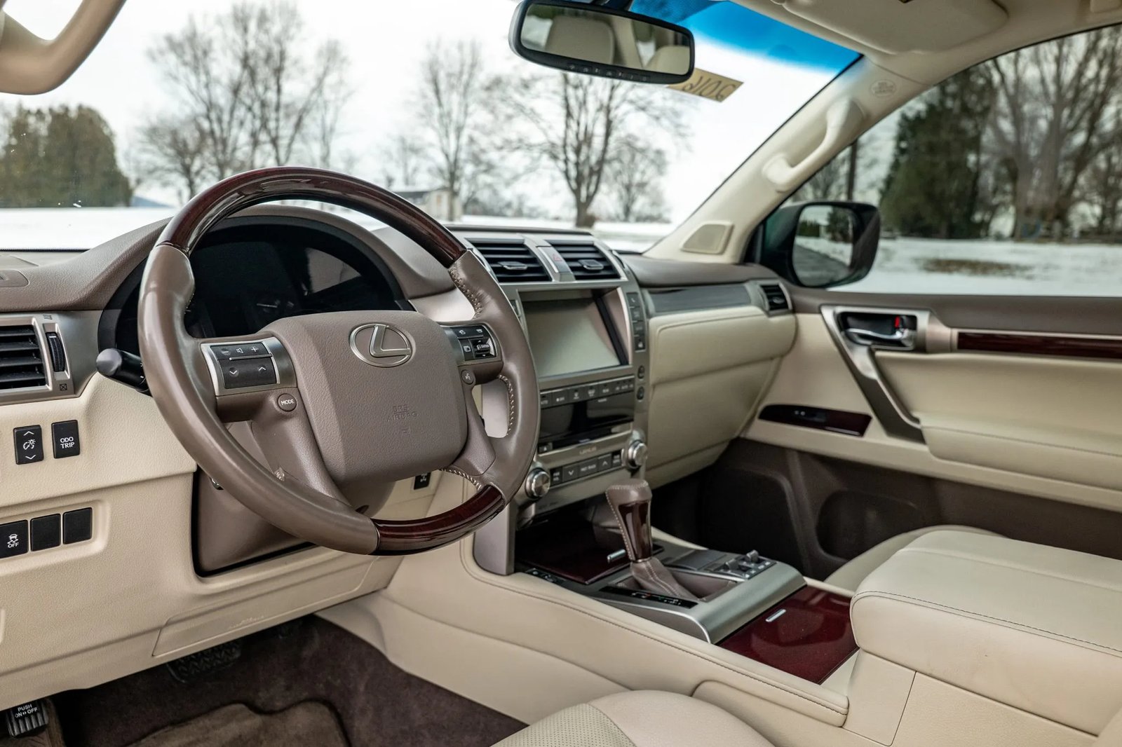 CLEAN CARFAX. 2019 LEXUS GX460 WITH 35K MILES. FINISHED IN STARFIRE PEARL OVER ECRU LEATHER. POWERED BY A 4.6-LITER V8 LINKED TO A SIX-SPEED AUTOMATIC TRANSMISSION, DUAL-RANGE TRANSFER CASE, AND LOCKING CENTER DIFFERENTIAL. LOADED WITH PREMIUM PACKAGE, KINETIC DYNAMIC SUSPENSION SYSTEM, HEATED & VENTILATED FRONT SEATS, HEATED SECOND-ROW BENCH, THREE-ZONE AUTOMATIC CLIMATE CONTROL, MAHOGANY TRIM, NAVIGATION, AND BLUETOOTH-CAPABLE CD STEREO. EXTERIOR FEATURES INCLUDE 18″ ALLOY WHEELS, LED HEADLIGHTS, FOG LIGHTS, RUNNING BOARDS, POWER-FOLDING MIRRORS, SUNROOF, ROOF RAILS, REAR SPOILER, FLIP-UP REAR WINDOW, AND SWING-OUT TAILGATE. OWNER’S MANUAL, CLEAN CARFAX REPORT, AND CLEAN TITLE.