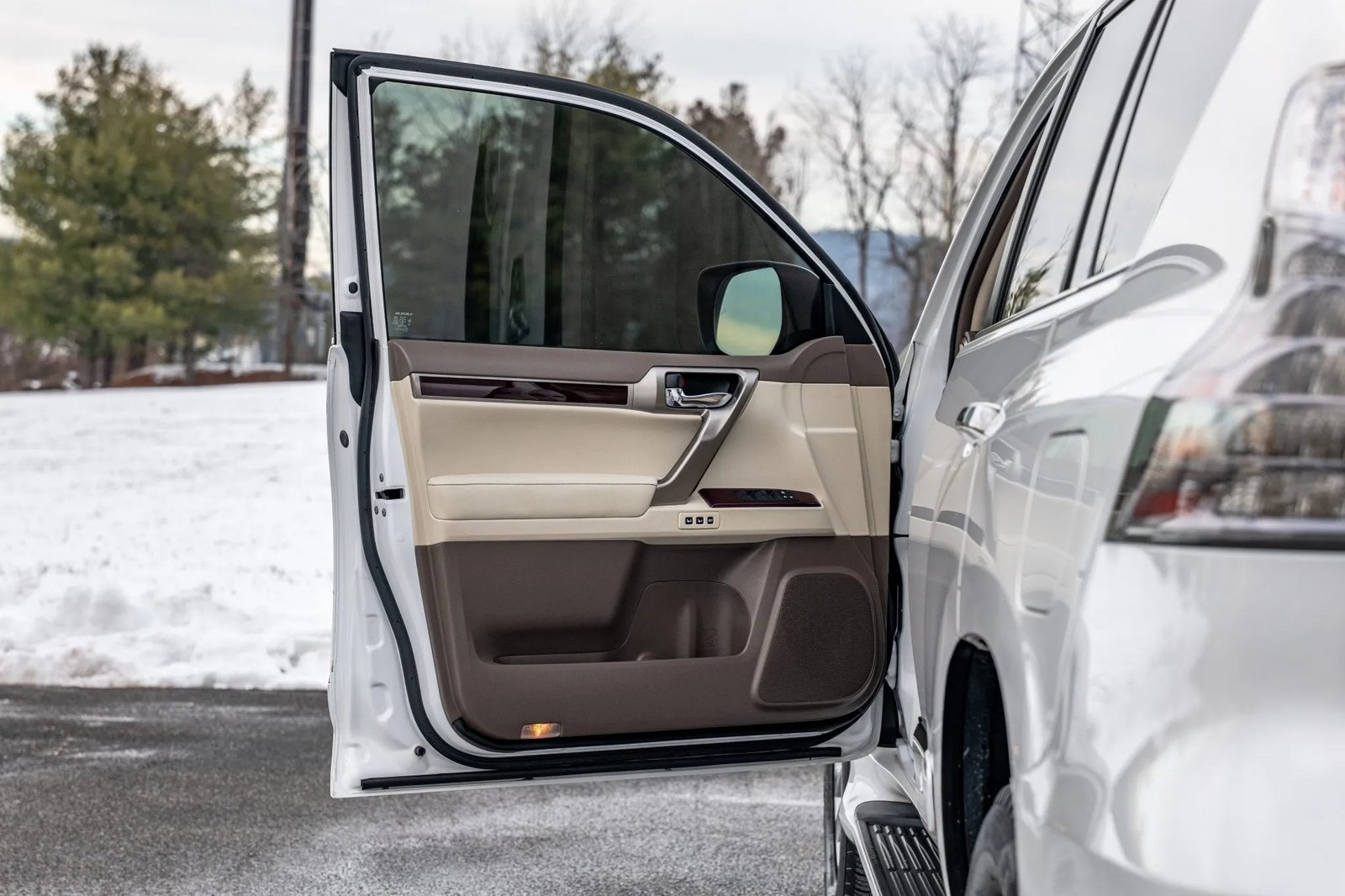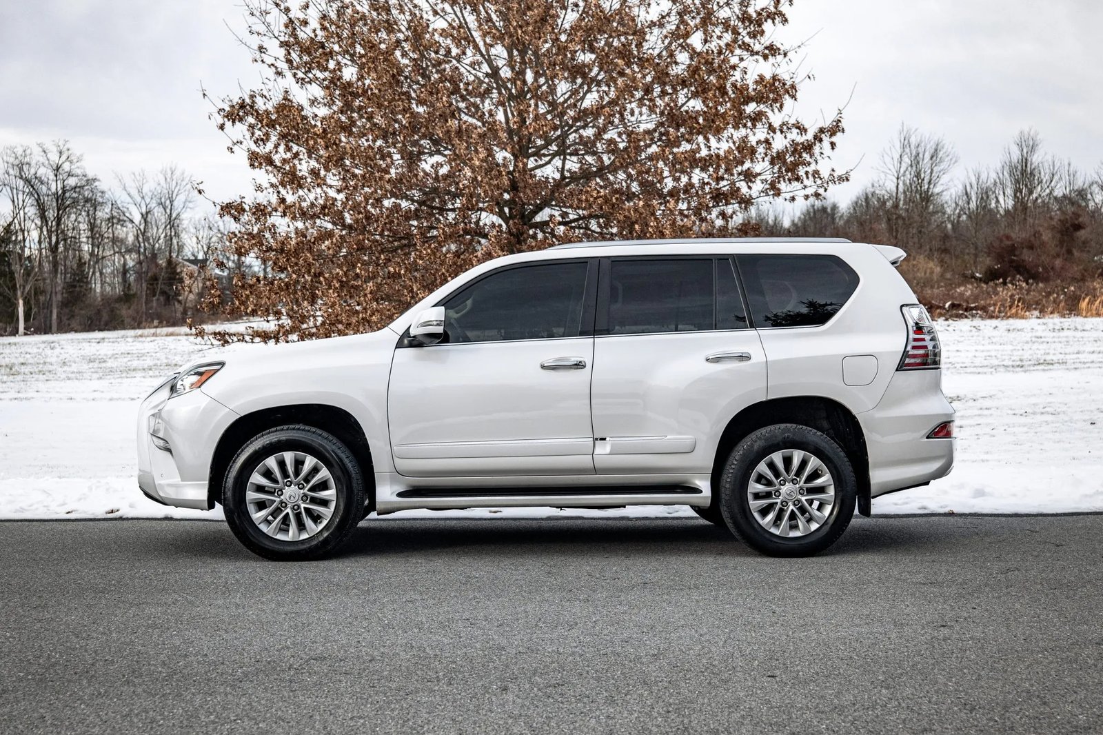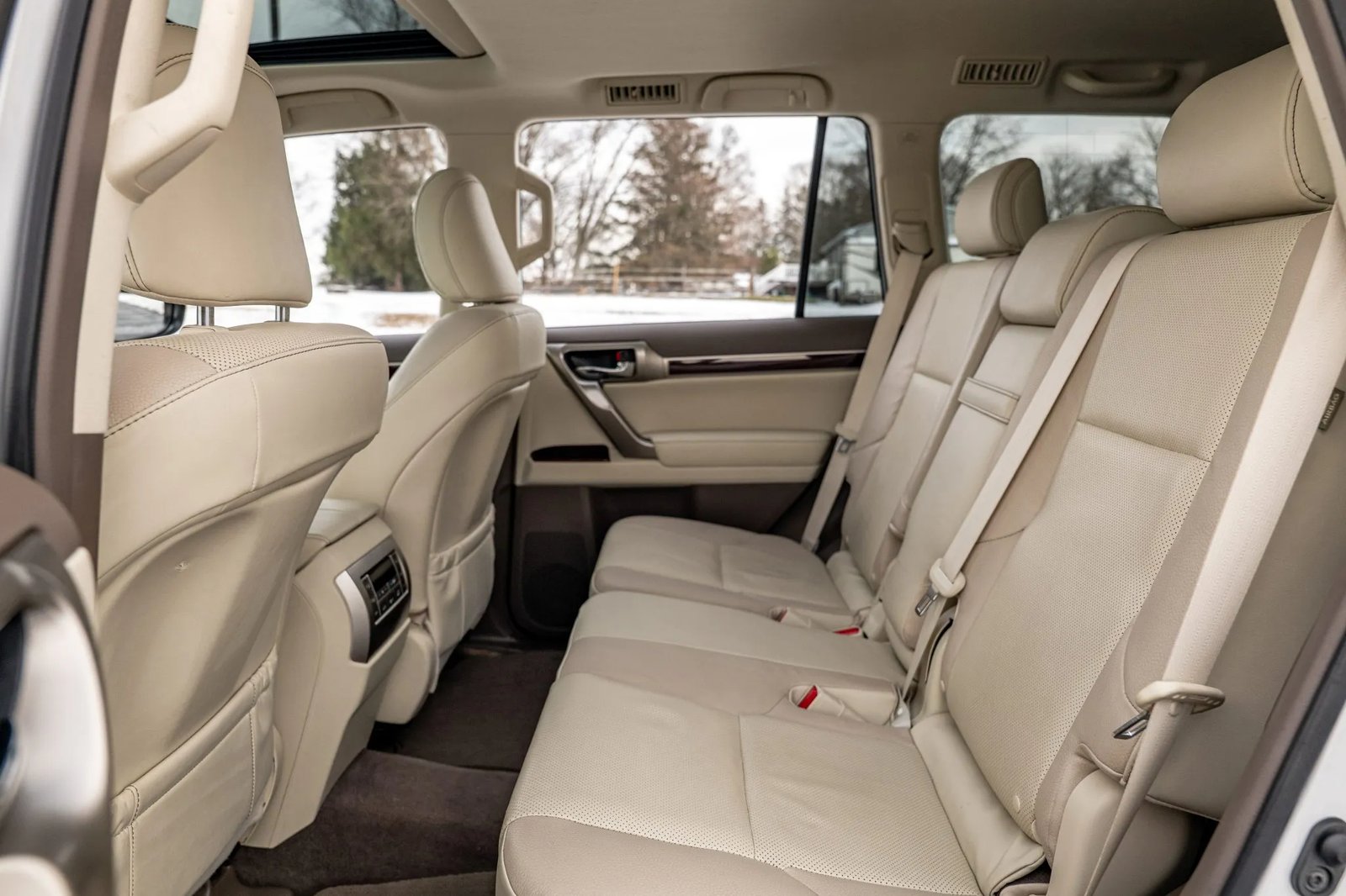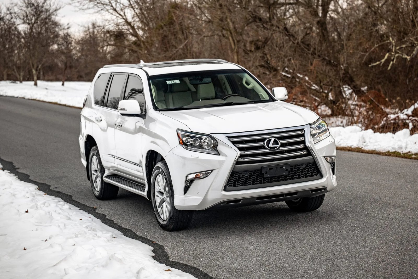 CLEAN CARFAX. 2019 LEXUS GX460 WITH 35K MILES. FINISHED IN STARFIRE PEARL OVER ECRU LEATHER. POWERED BY A 4.6-LITER V8 LINKED TO A SIX-SPEED AUTOMATIC TRANSMISSION, DUAL-RANGE TRANSFER CASE, AND LOCKING CENTER DIFFERENTIAL. LOADED WITH PREMIUM PACKAGE, KINETIC DYNAMIC SUSPENSION SYSTEM, HEATED & VENTILATED FRONT SEATS, HEATED SECOND-ROW BENCH, THREE-ZONE AUTOMATIC CLIMATE CONTROL, MAHOGANY TRIM, NAVIGATION, AND BLUETOOTH-CAPABLE CD STEREO. EXTERIOR FEATURES INCLUDE 18″ ALLOY WHEELS, LED HEADLIGHTS, FOG LIGHTS, RUNNING BOARDS, POWER-FOLDING MIRRORS, SUNROOF, ROOF RAILS, REAR SPOILER, FLIP-UP REAR WINDOW, AND SWING-OUT TAILGATE. OWNER’S MANUAL, CLEAN CARFAX REPORT, AND CLEAN TITLE.
