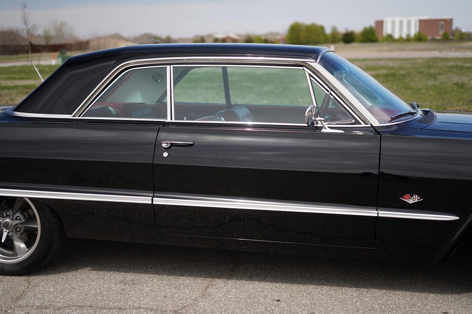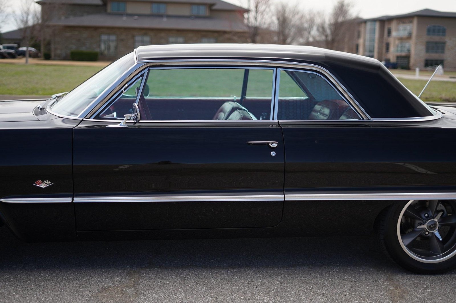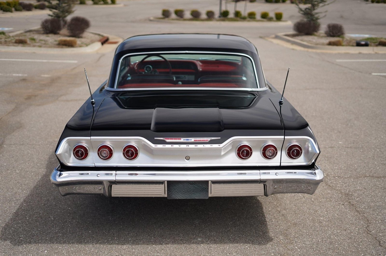 Take a look at this stunning 1963 Chevrolet Impala! With its sleek, straight body, glossy black paint finish, red interior, and polished stainless steel and chrome components, this Impala is a sight to behold. It has undergone a meticulous frame-on restoration that showcases the high level of care it has received.