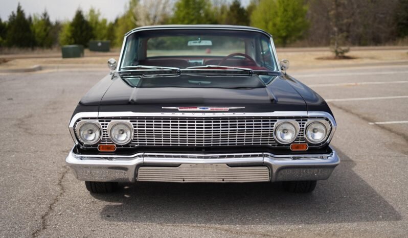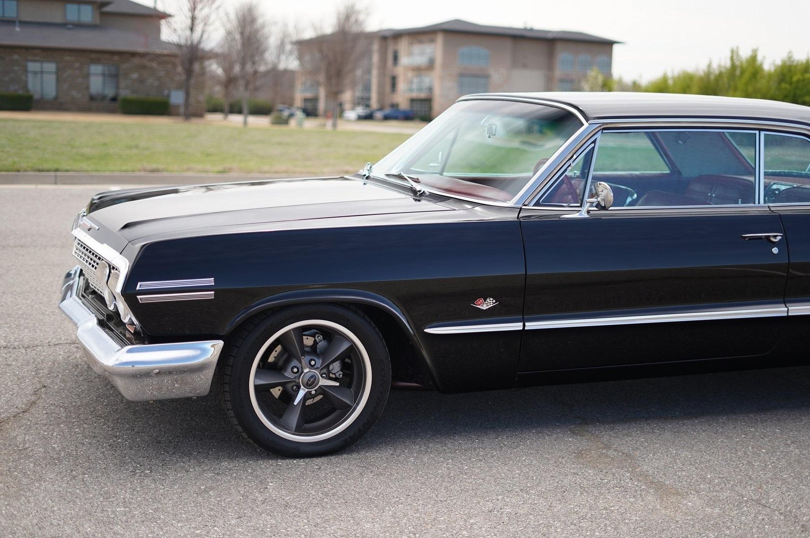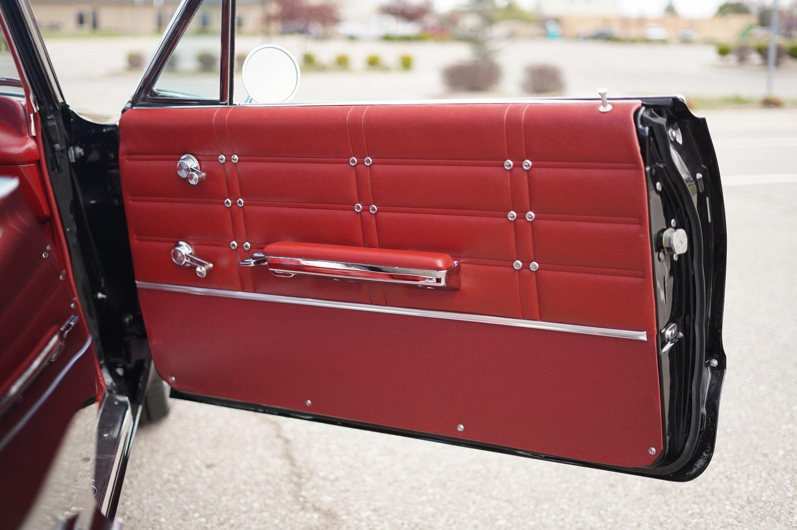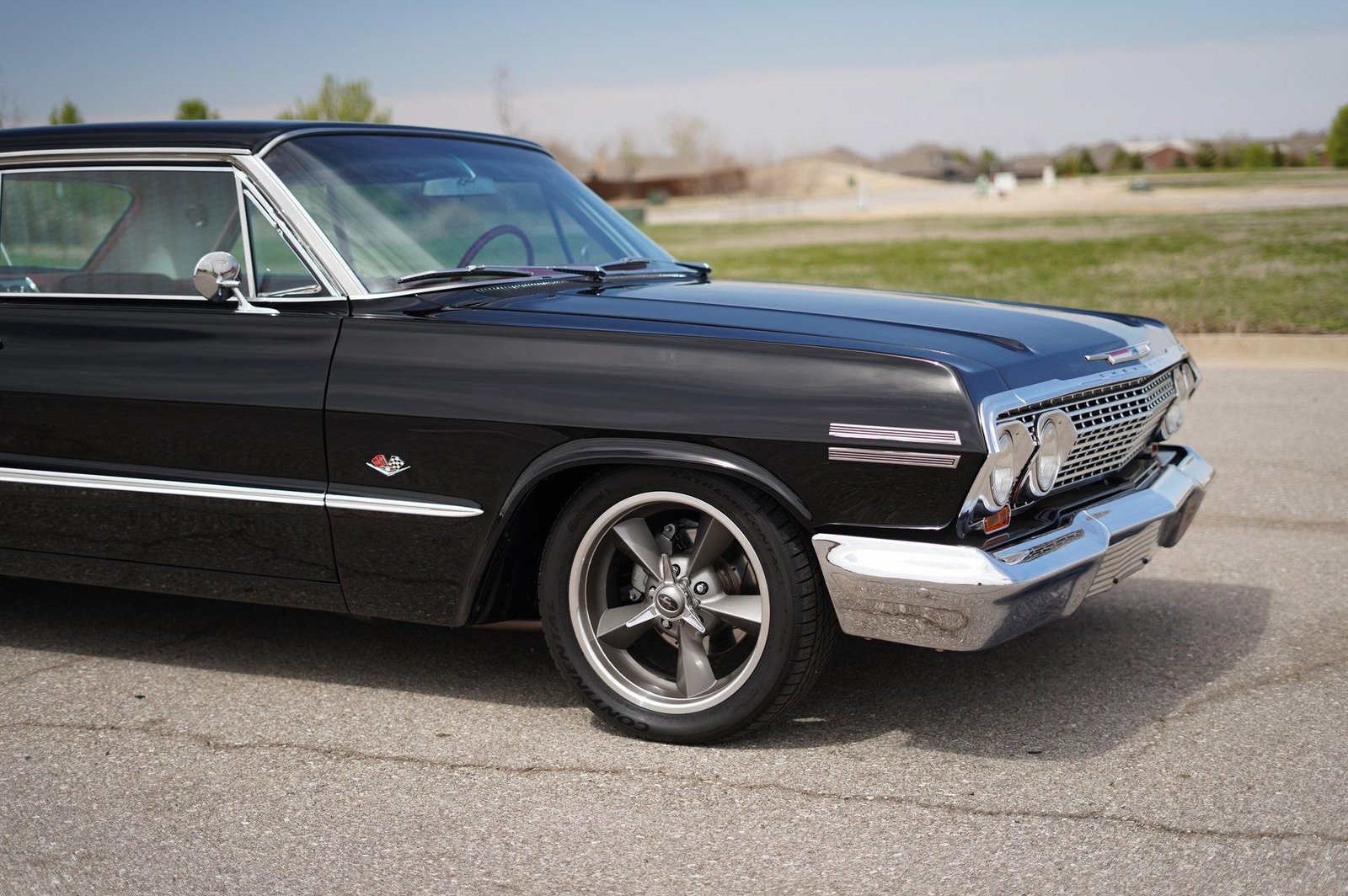 Take a look at this stunning 1963 Chevrolet Impala! With its sleek, straight body, glossy black paint finish, red interior, and polished stainless steel and chrome components, this Impala is a sight to behold. It has undergone a meticulous frame-on restoration that showcases the high level of care it has received.