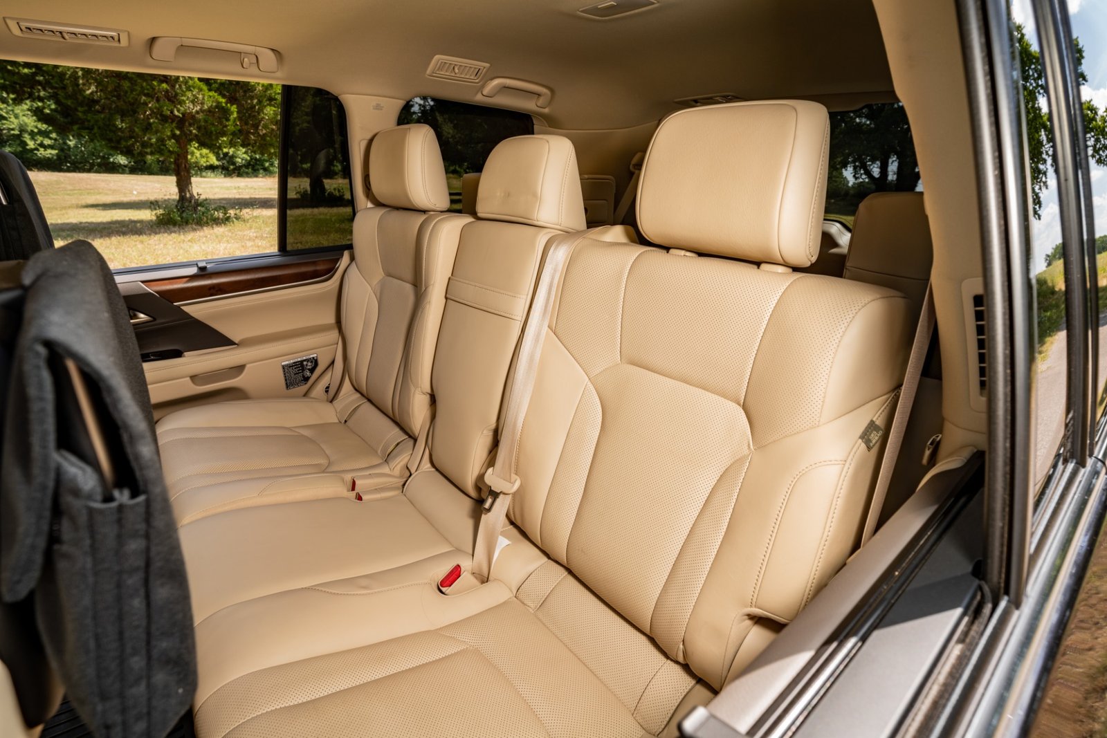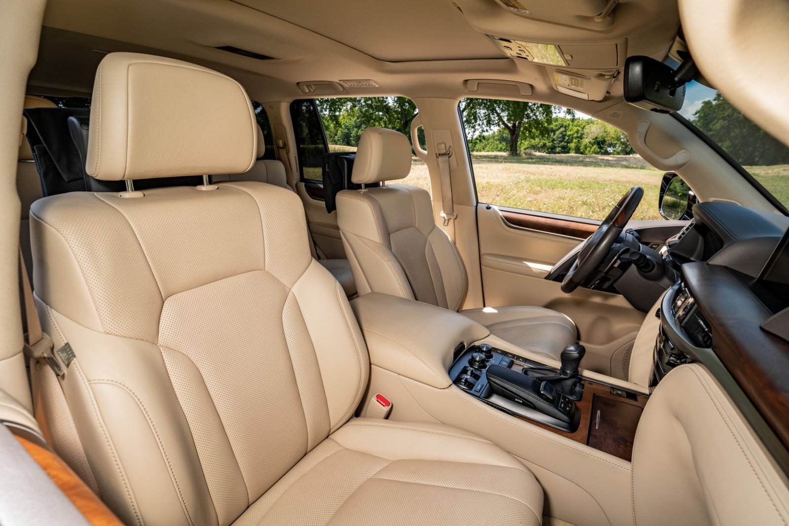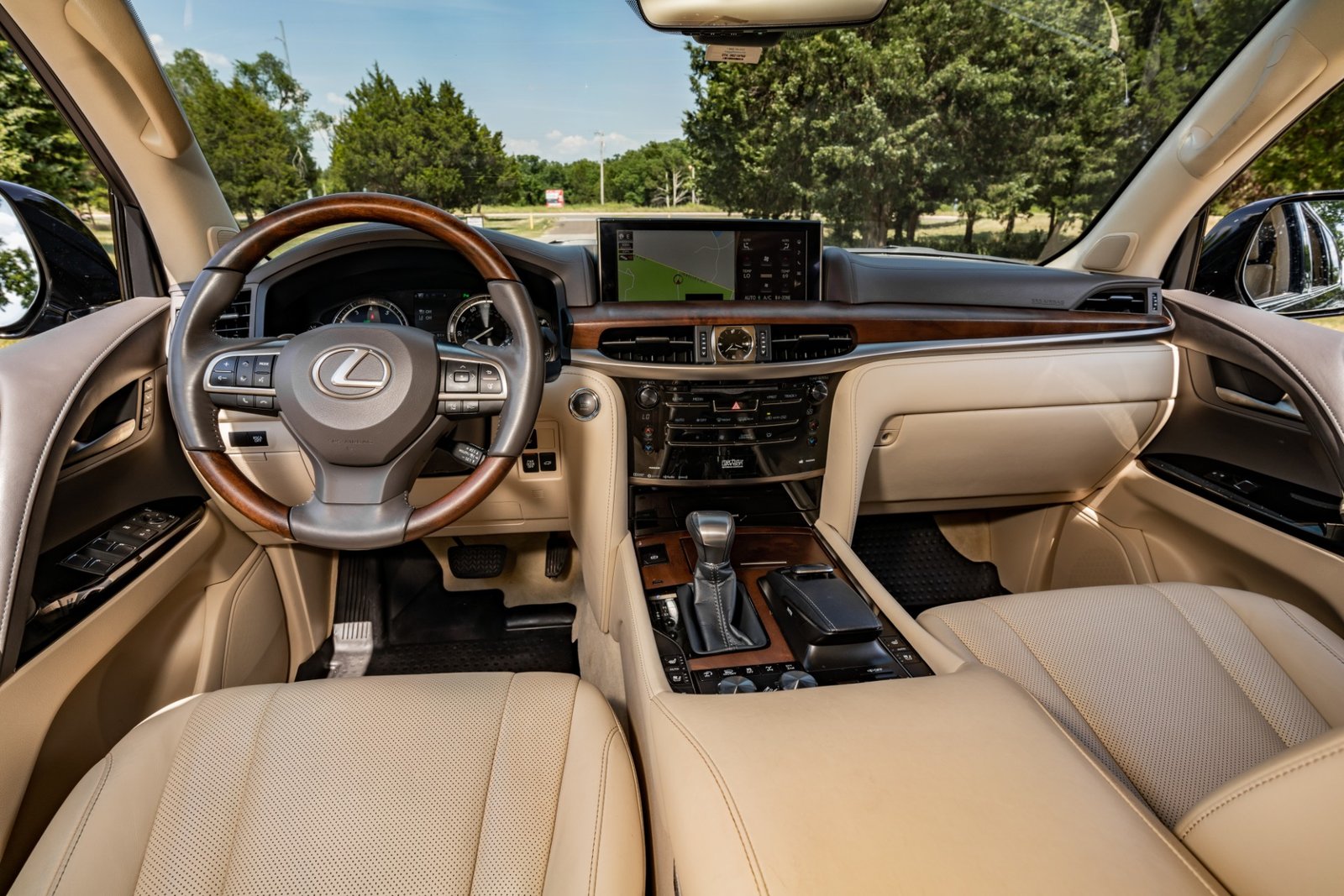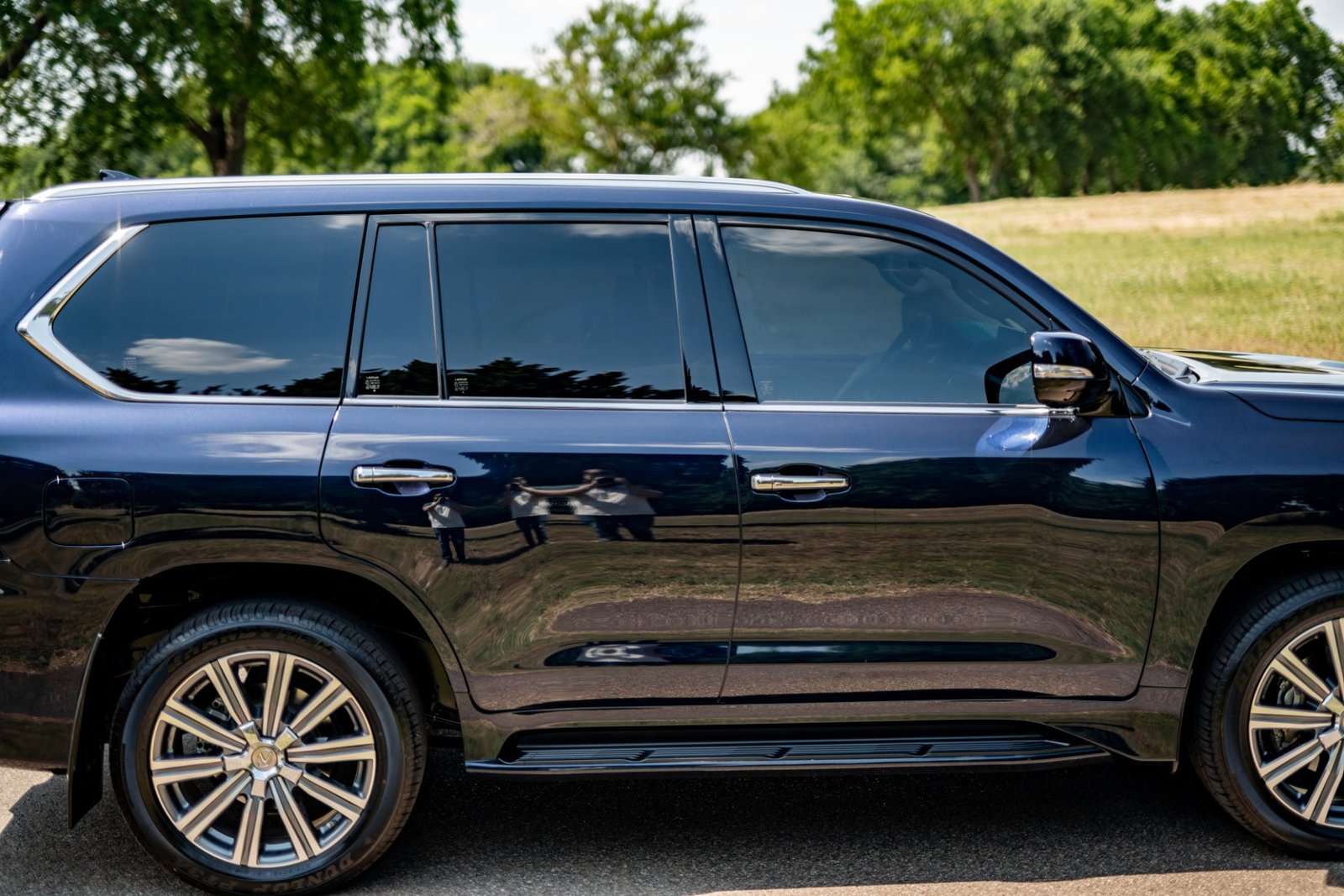 Clean CARFAX. Blue 2017 Lexus LX 570 4WD 8-Speed Automatic with Sequential Shift 5.7L V8 DOHC Dual VVT-i 32V – ADJUSTABLE SUSPENSION – AIR CONDITIONING – AUTO DIMMING MIRRORS – AUX PORT – BLIND SPOT DETECTION – BLUETOOTH – COLLISION WARNING SENSORS – CRUISE CONTROL – DUAL ZONE CLIMATE CONTROL – FOG LIGHTS – FRONT PARKING SENSORS – TURN SENSITIVE HEADLIGHTS – HEADS UP DISPLAY – HEATED AND COOLED SEATS – HEATED SEATS – HEATER – LANE KEEP ASSIST – LANE DEPARTURE WARNING – LEATHER SEATS – LED HEADLIGHTS – MEMORY PASSENGER SEAT – MEMORY SEATS – NAVIGATION – ONE TOUCH DRIVER WINDOW – ONE TOUCH PASSENGER WINDOW – POWER FOLDING MIRRORS – POWER LOCKS – POWER MIRRORS – POWER SEATS – POWER STEERING – POWER TELESCOPING AND TILTING STEERING WHEEL – POWER WINDOWS – PUSH BUTTON START – RAIN SENSING WIPERS – DIMMING REAR VIEW MIRROR – REVERSE CAMERA – REVERSE SENSORS – RUNNING BOARDS – SPORT MODE – SUNROOF – TALGATE STEP – TRACTION CONTROL – TRIP COMPUTER – TWILIGHT SENSING HEADLIGHTS – UNIVERSAL GARAGE DOOR OPENER – USB CHARGING PORTS – POWER DISC BRAKES All-Weather Floor Mats w/Cargo Tray Black Shimamoku Wood & Leather Steering Wheel Climate Comfort Seats Cool Box DVD Rear Seat Entertainment System Heads-Up Display Key Gloves Lexus Enform App Suite Lexus Enform Destinations Lexus Navigation System Radio: Mark Levinson Audio System.
