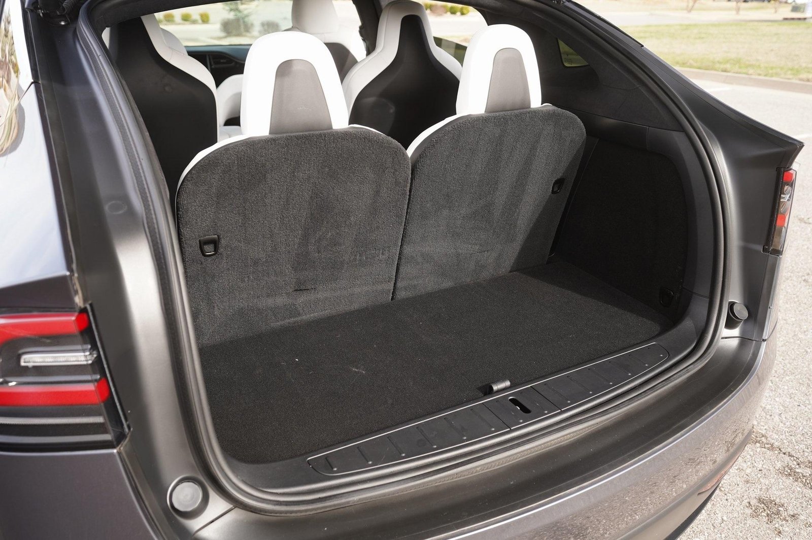 Clean CARFAX. Gray 2020 Tesla Model X Long Range AWD 1-Speed Automatic Electric Motor – ADJUSTABLE SUSPENSION – AIR CONDITIONING – ALCANTARA INTERIOR – AUTO DIMMING MIRRORS – BLIND SPOT DETECTION – BLUETOOTH – COLLISION WARNING SENSORS – DUAL ZONE CLIMATE CONTROL – FRONT PARKING SENSORS – HEATED SEATS – HEATED STEERING WHEEL – HEATER – HID HEADLIGHTS – LANE KEEP ASSIST – LANE DEPARTURE WARNING – ADAPTIVE CRUISE CONTROL – LEATHER SEATS – MEMORY SEATS – NAVIGATION – ONE TOUCH DRIVER WINDOW – ONE TOUCH PASSENGER WINDOW – PANORAMIC SUNROOF – POWER FOLDING MIRRORS – POWER LOCKS – POWER SEATS – POWER STEERING – POWER TELESCOPING AND TILTING STEERING WHEEL – POWER WINDOWS – RAIN SENSING WIPERS – DIMMING REAR VIEW MIRROR – REVERSE CAMERA – REVERSE SENSORS – SIDE SKIRTS – SMART PROXIMITY KEY – TRACTION CONTROL – TRIP COMPUTER – TWILIGHT SENSING HEADLIGHTS – UNIVERSAL GARAGE DOOR OPENER – USB CHARGING PORTS – POWER DISC BRAKES 17 Speakers 7 Seat Interior ABS brakes Active Cruise Control Alloy wheels Auto High-beam Headlights Auto tilt-away steering wheel Auto-dimming door mirrors Auto-dimming Rear-View mirror Auto-leveling suspension Automatic temperature control Door auto-latch Electronic Stability Control Exterior Parking Camera Rear Front dual zone A/C Full Self-Driving Capability Fully automatic headlights Garage door transmitter: Homelink Head restraints memory Heated door mirrors Heated front seats Heated rear seats Heated steering wheel Illuminated entry Low tire pressure warning Memory seat Navigation System Power door mirrors Power driver seat Power Liftgate Power steering Power windows Premium Audio System Premium Seat Trim Rain sensing wipers Remote keyless entry Security system Steering wheel memory Traction control Trip computer White & Black Premium Interior.